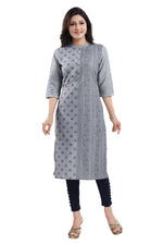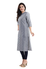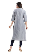 Enjoy the sparkle in subtlety as you narrow down on this Secret Shimmer Cotton Silk Formal Wear Tunic for Women from the house of Snehal Creations. This round neck tunic is made up of metallic copper and comes with a brown print asymmetrical design. The tunic has a three-quarter sleeve and sequence and thread work on the edges.