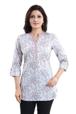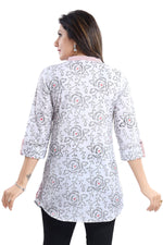 Snehal Creations Vibrant Vigour White Cotton Printed Short Tunic Top
