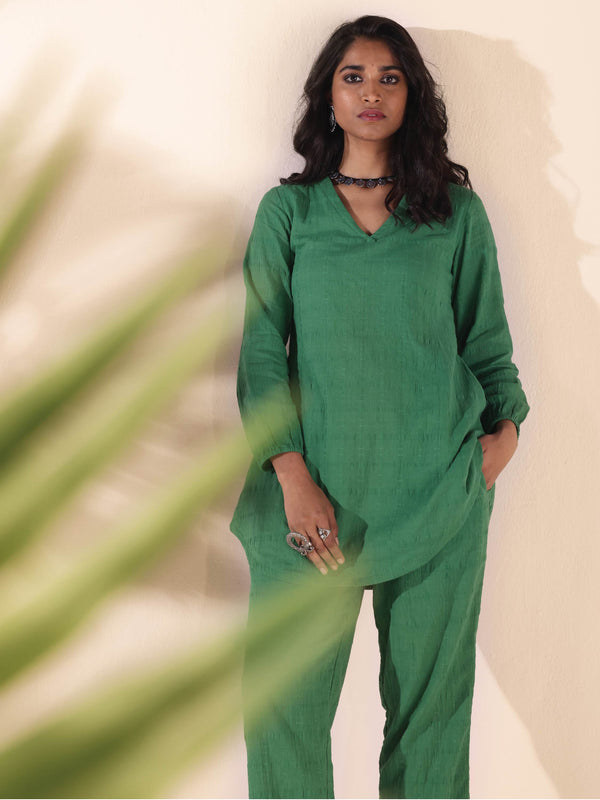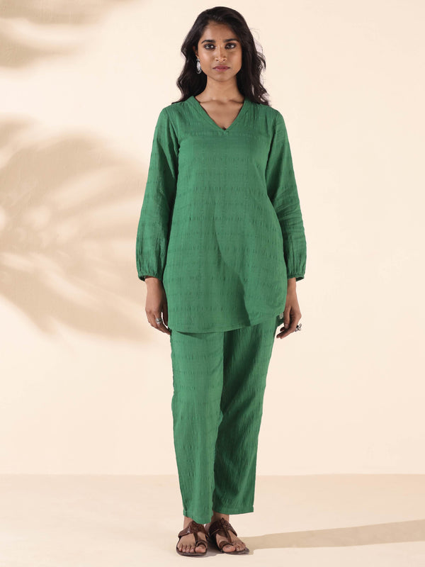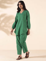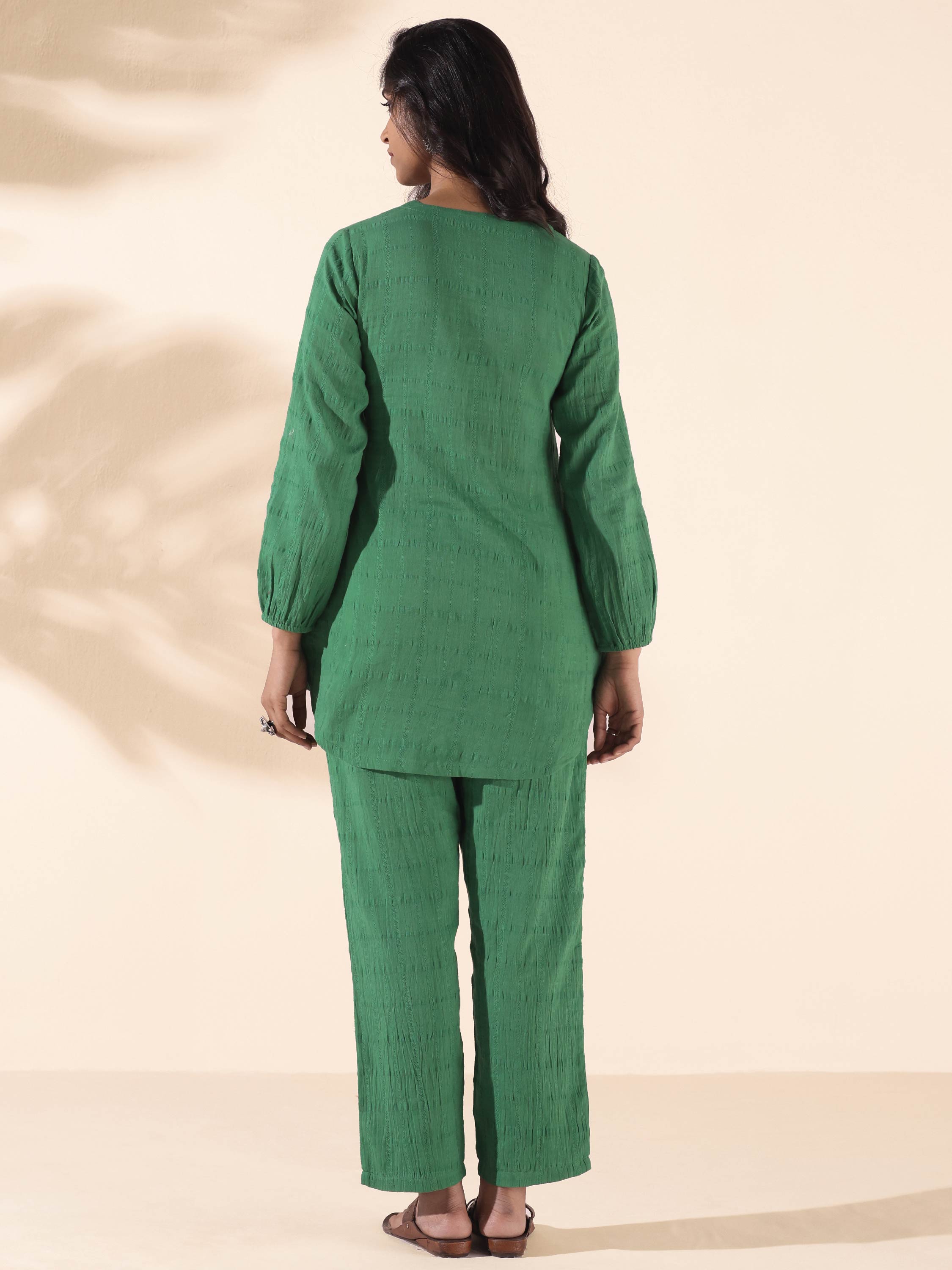 trueBrowns Green Cotton Dobby Relaxed Co-ord Set