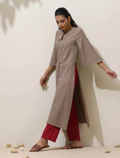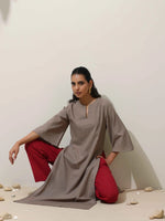 trueBrowns Grey Cotton Linen Kurta Pant SetDescription Elevate your style and step into effortless elegance with this grey high-slit kurta paired w...