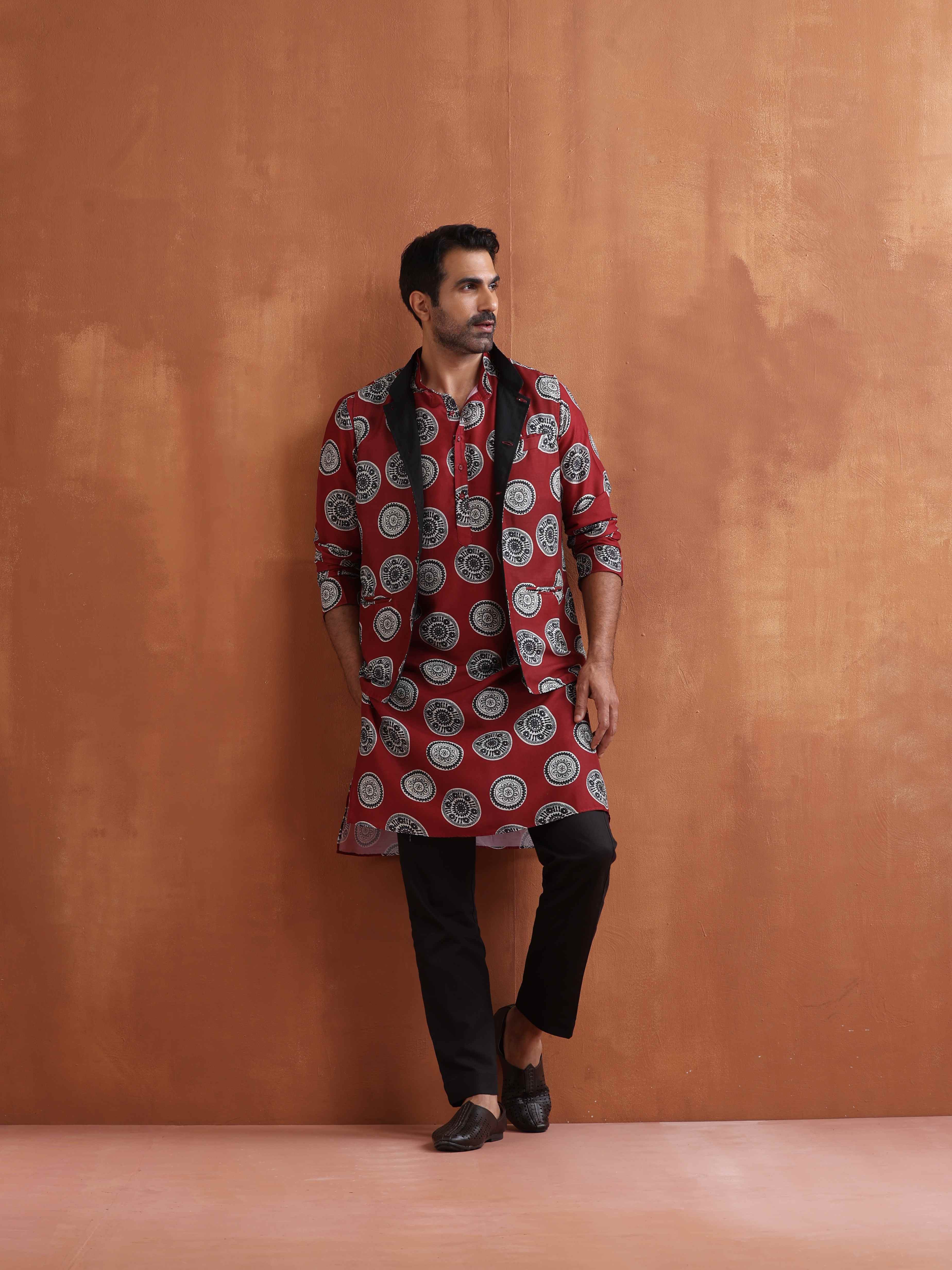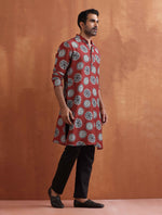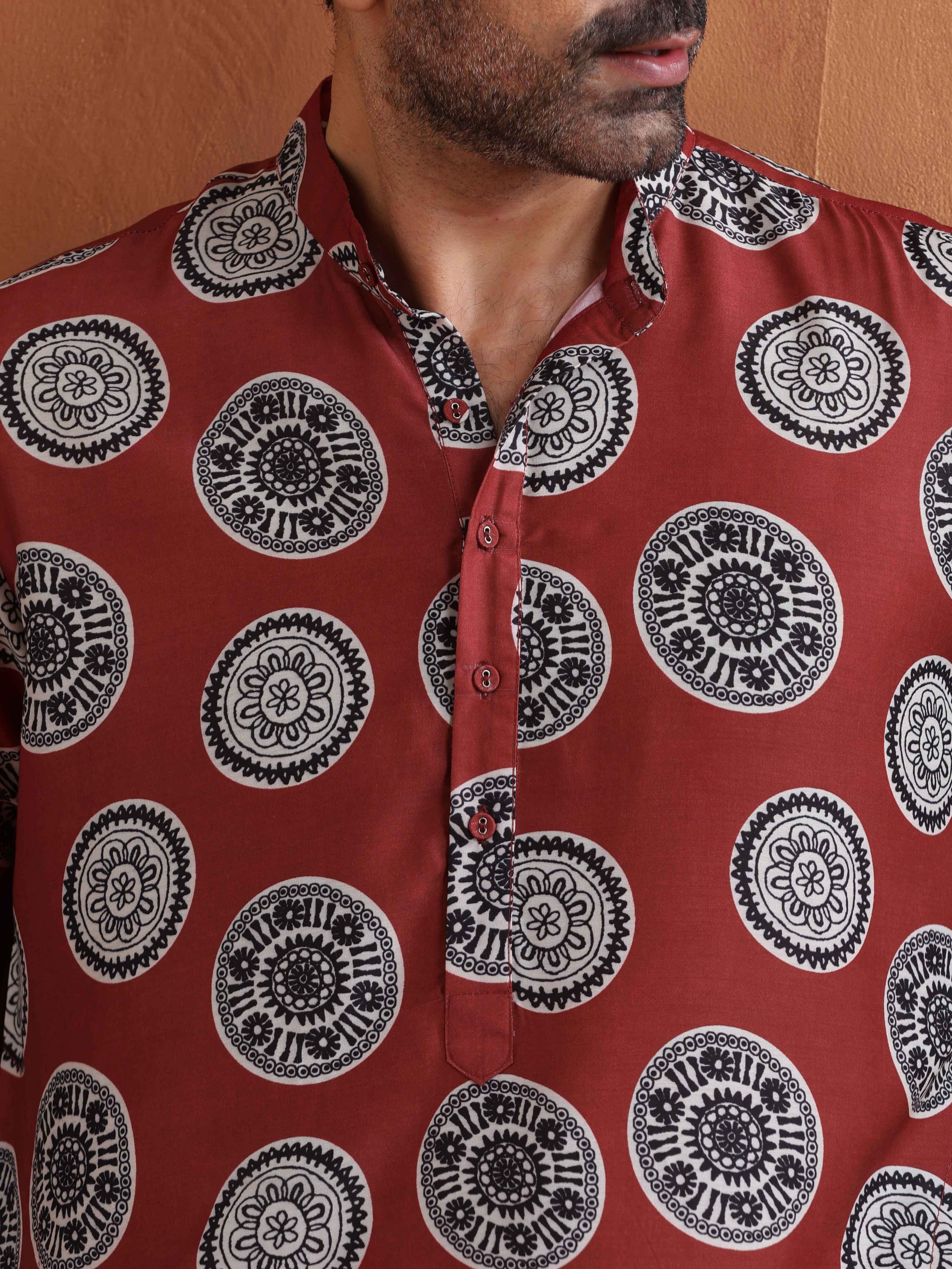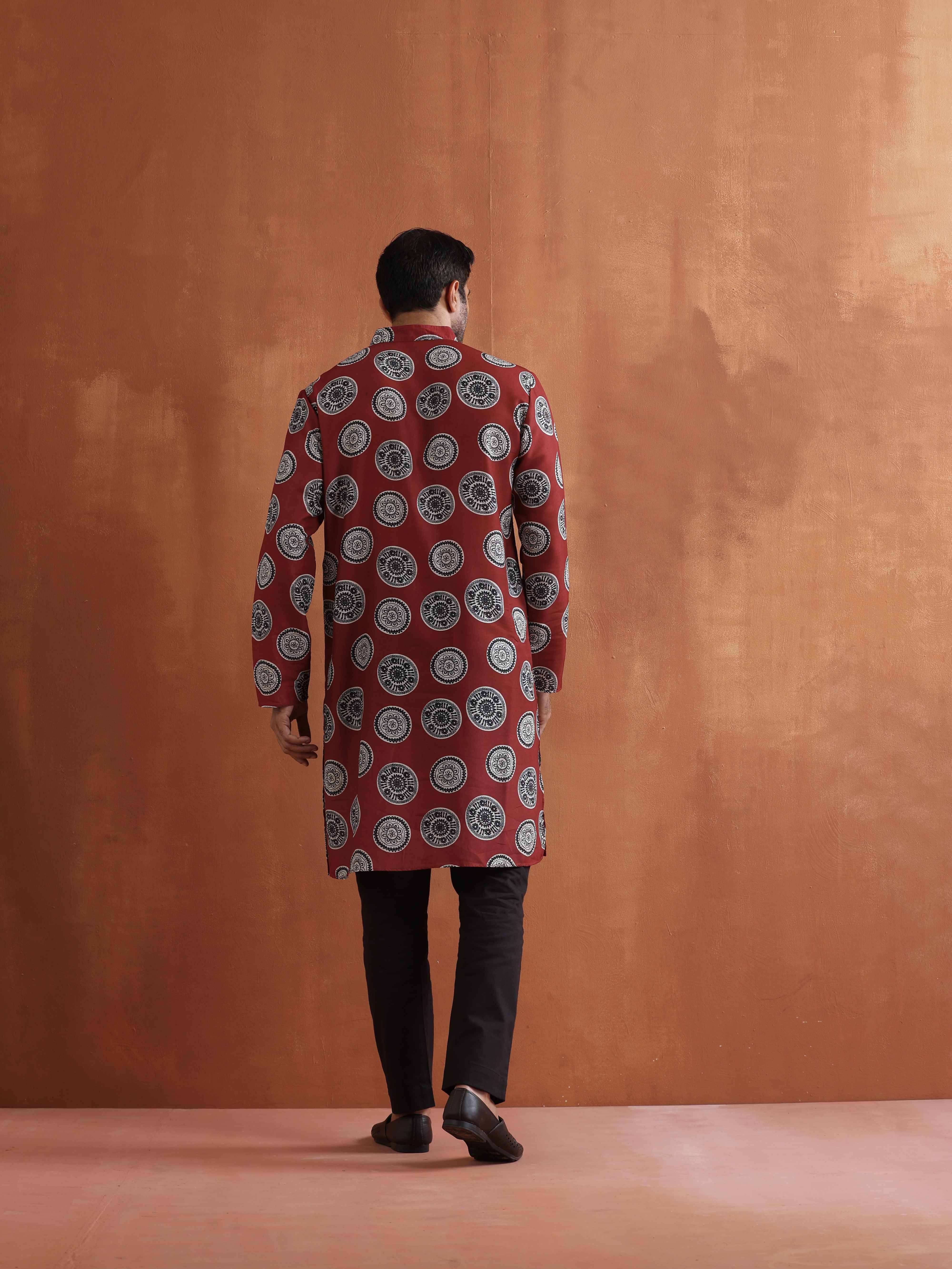 Upgrade your festive wardrobe with this rust viscose blend printed kurta.