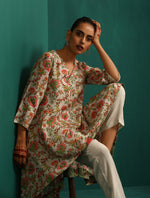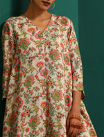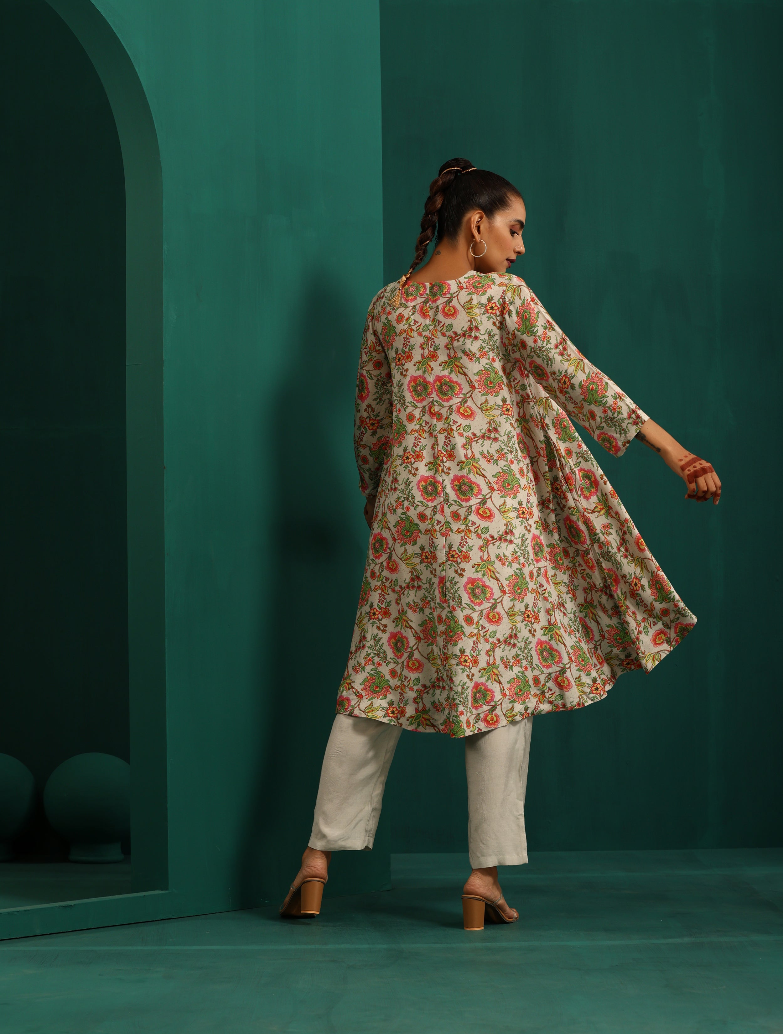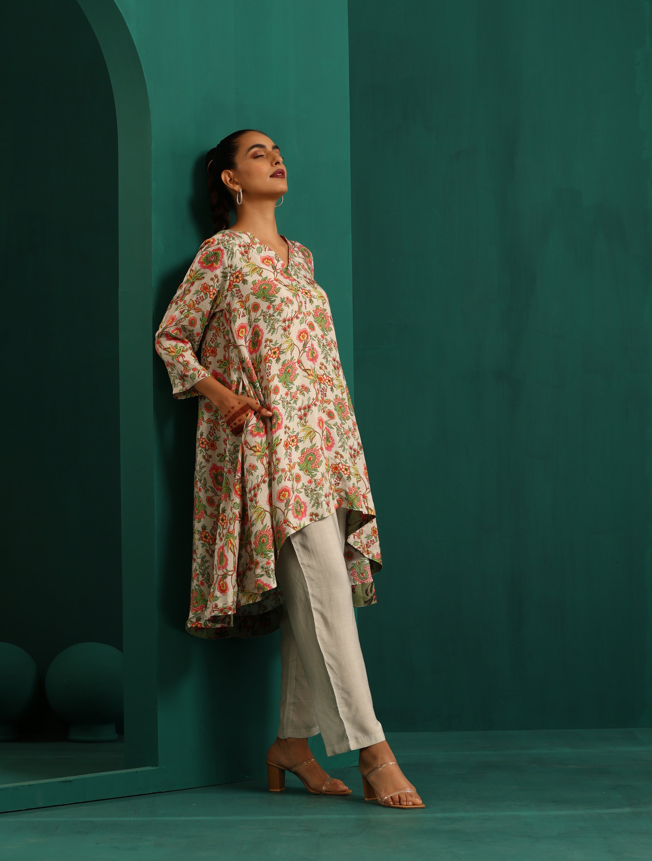 trueBrowns Off white Floral Jaal Muslin Silk Printed High Low Co-ord Set