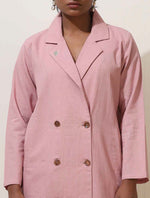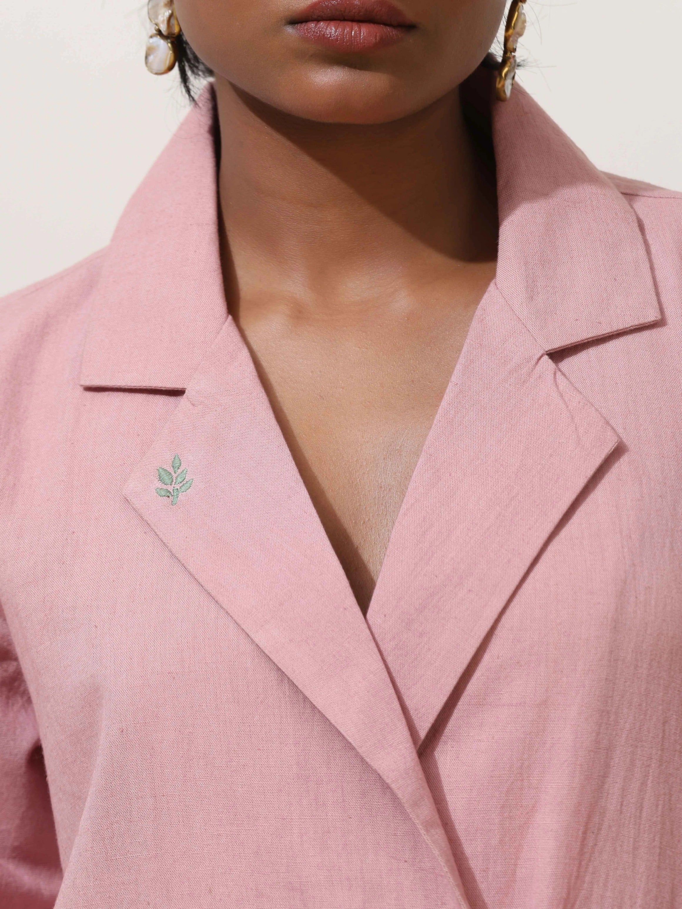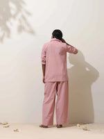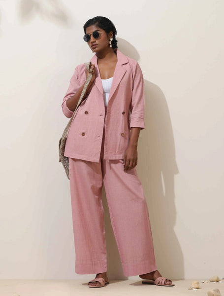 trueBrowns Pink Cotton Linen Co-Ord SetDescription Elevate your style with this pink double breasted jacket complemented with pink flared pants. It...
