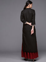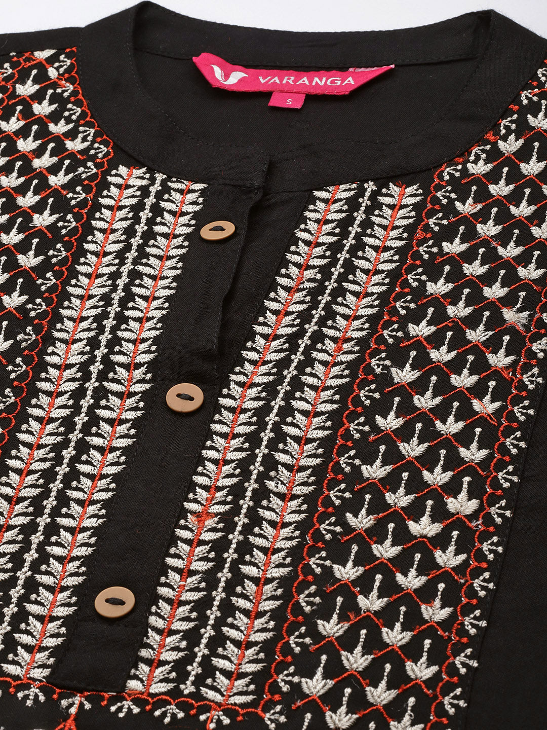 Varanga Women Black & Off White Ethnic Motifs Embroidered Yoke Design Kurta - S