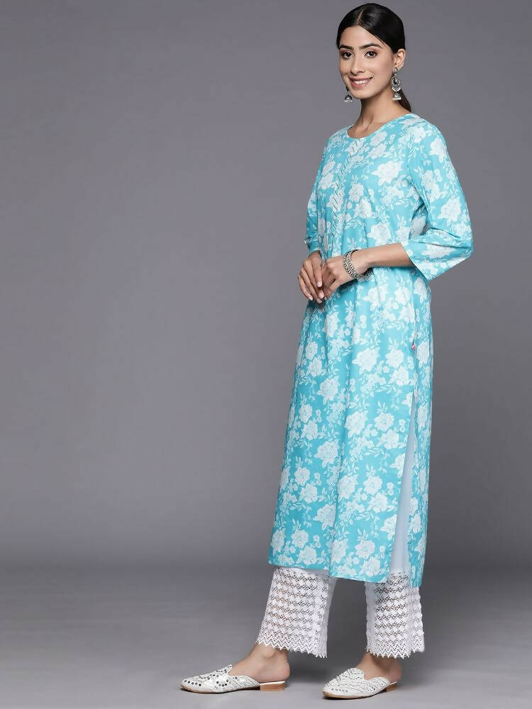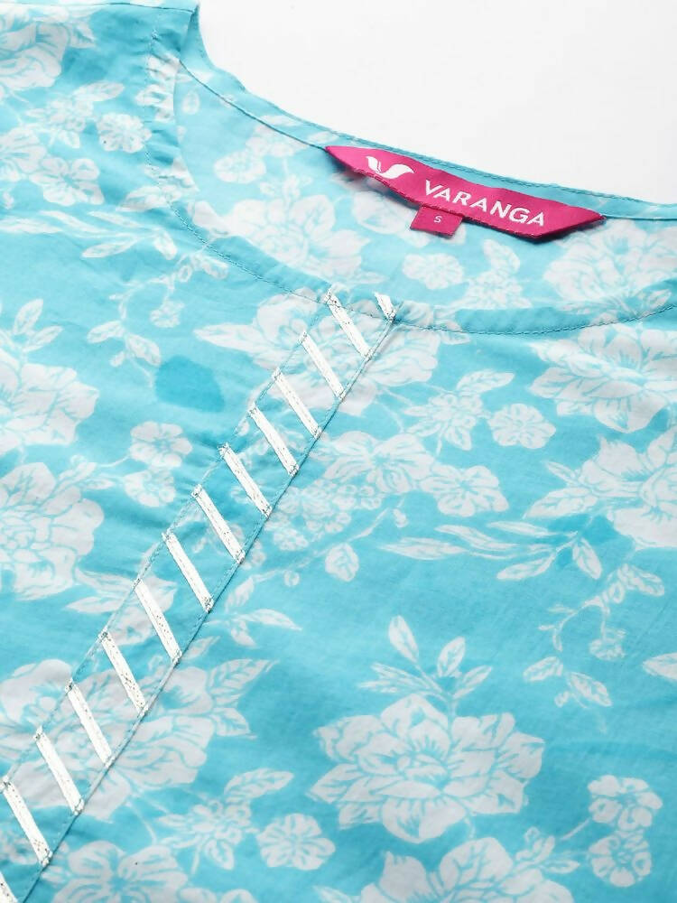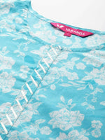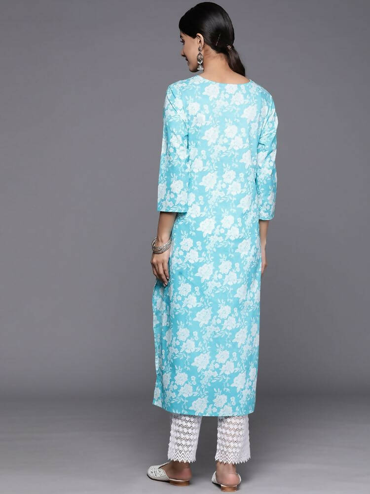 Varanga Women Blue Floral Printed Straight Kurta With Three Quarter Sleeves