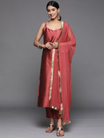 Varanga Women Burgundy Strap Kurta With Tonal Bottom And Tonal Dupatta - S