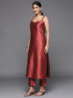 Varanga Women Burgundy Strap Kurta With Tonal Bottom And Tonal DupattaBurgundy Spaghetti Strap Kurta With Tonal Bottom And Dupatta , Without Sleeve...