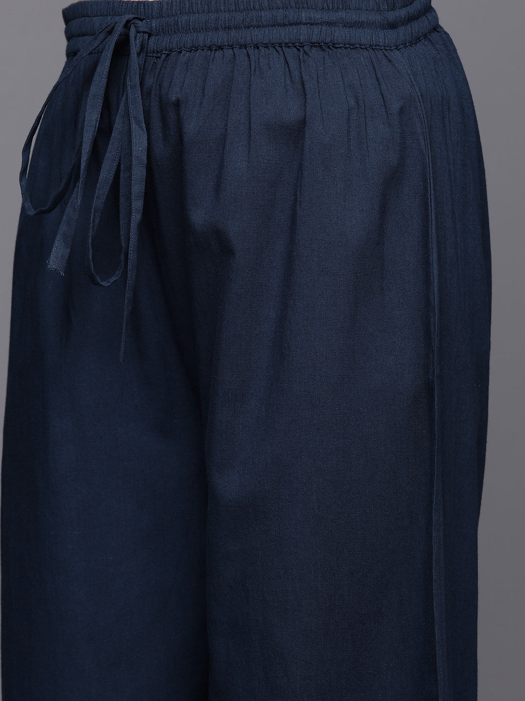 Varanga Women Straight Kurta With Round Neck Paired With Blue Solid Palazzo And Blue Solid Dupatta - S
