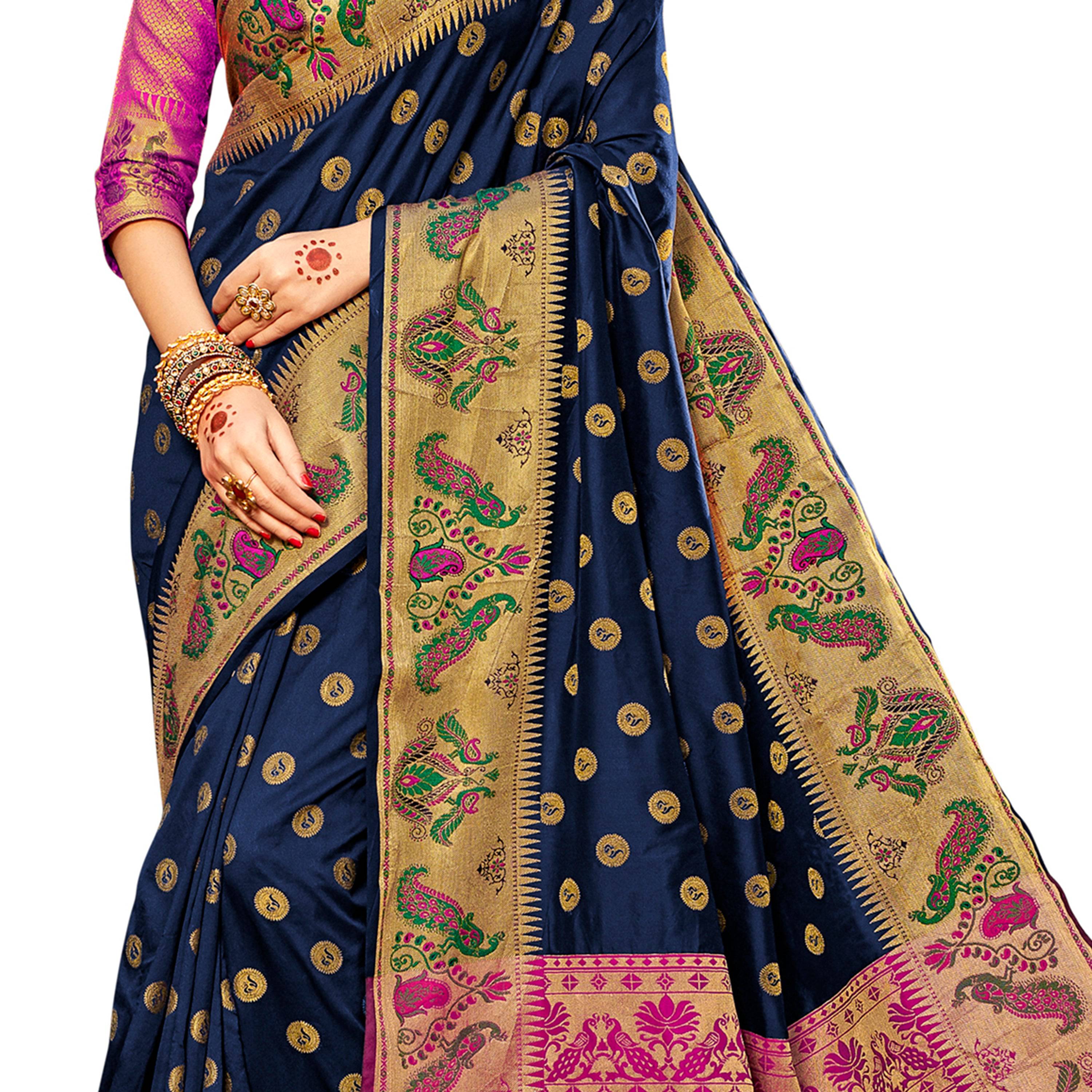 Vamika Royal Blue Designer Weaving Banrasi Silk Saree