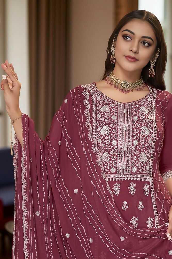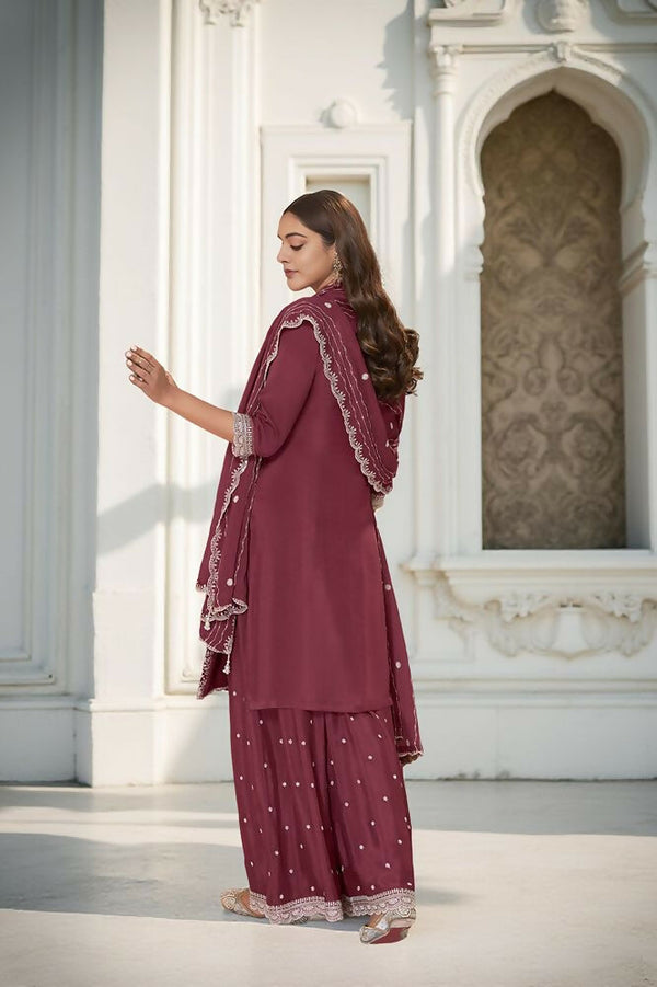 EthnicFestive Wear Premium Chinon Fabric Maroon Stitched Suit With Dupatta-ZeeyaStitched Suit With Dupatta Top color :Maroon Bottom Color :Maroon D...