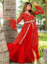 Prazu Fashion Red Pink Bandhej Embroidered Top With Lehenga