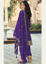 Vegaa Fashion Violet Chinon Silk Embroidered Designer Palazzo Suit - M-(38)