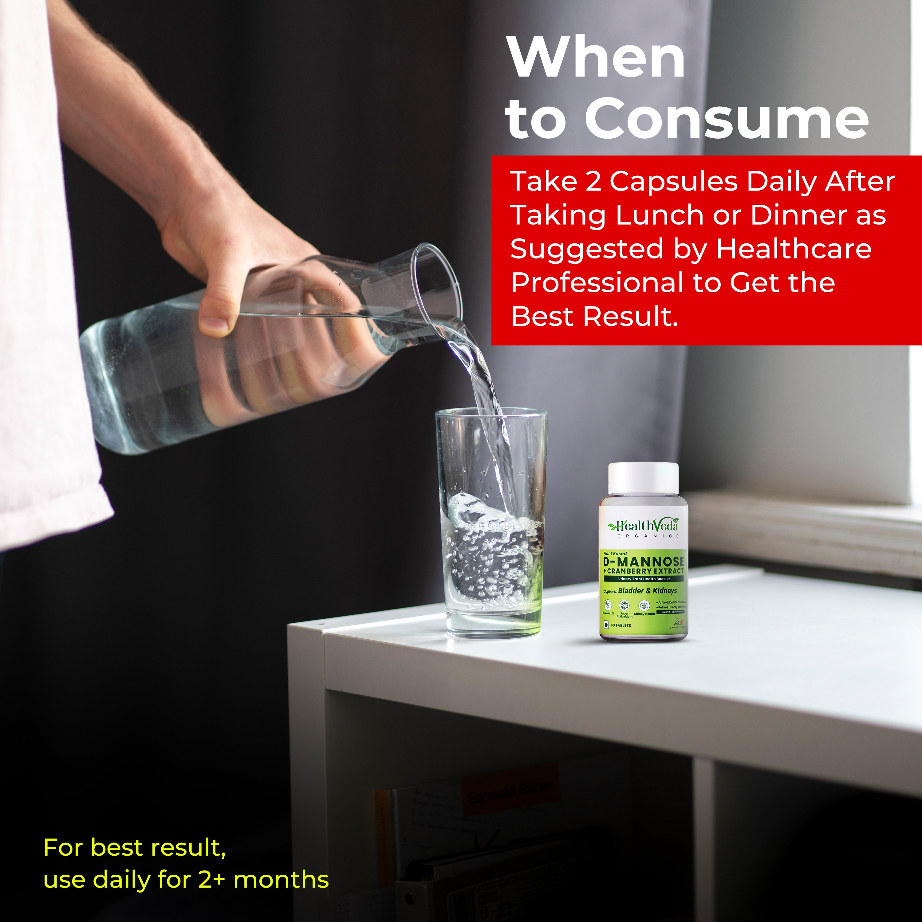 Health Veda Organics D-Mannose + Cranberry Extract TabletsHow to Use:Take 2 Tablets regularly with water; one each after lunch & dinner or as d...