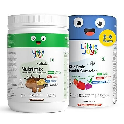 Little Joys Nutrimix Nutrition Powder Belgian Chocolate + Brain Gummies 2 - 6 years ComboThis combo Contains: Little Joys Nutrimix Nutrition Powder...
