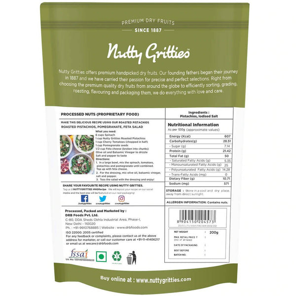 Nutty Gritties California Roasted Pistachios Lightly Salted - 200 gm