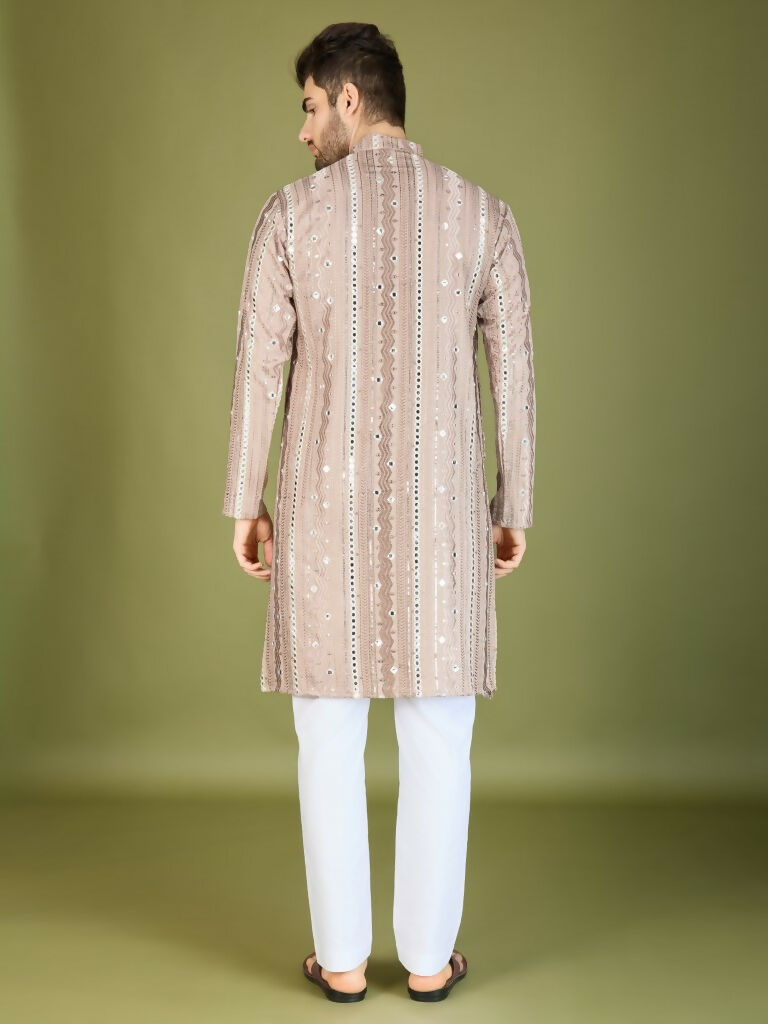 Exude effortless sophistication with this Embroidered Kurta. Crafted from Pure Viscose Rayon, it features subtle Thread Sequence & Foil Mirror Embroidery Work that adds a touch of understated elegance. while the meticulous detailing reflects refined craftsmanship. Perfect for festive gatherings and traditional occasions, this kurta seamlessly blends contemporary style with cultural heritage. Awarded as the Most Trusted Brand, we're delivering styles you love, just as promised.