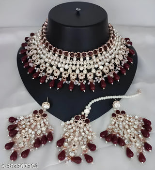 Jewel City Luxurious Maroon Kundan Bridal Set - Complete Semi Wedding Jewelry Collection with Pearl Embellishments
