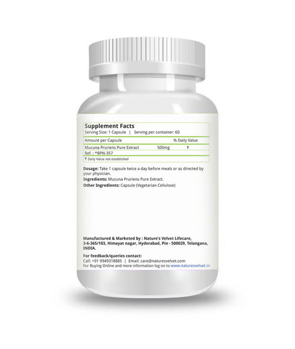 Nature's Velvet Kapikachhu Capsules Key Ingredients: Kapikachhu Pure Extract How to use: Take 1 capsule twice a day before meals or as suggest...