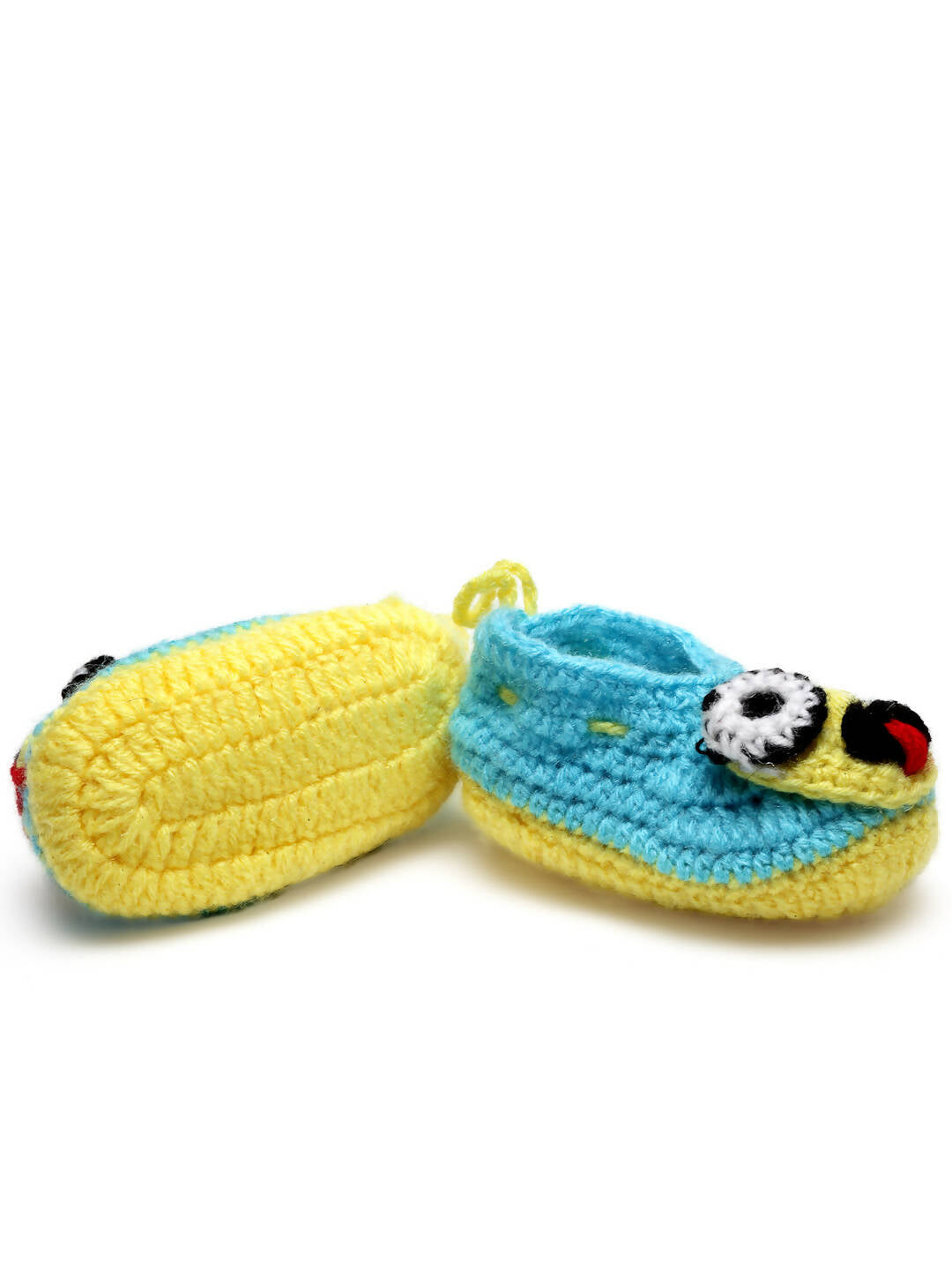 Chutput Kids Woollen Hand Knitted Smile Face Booties - Blue - Distacart