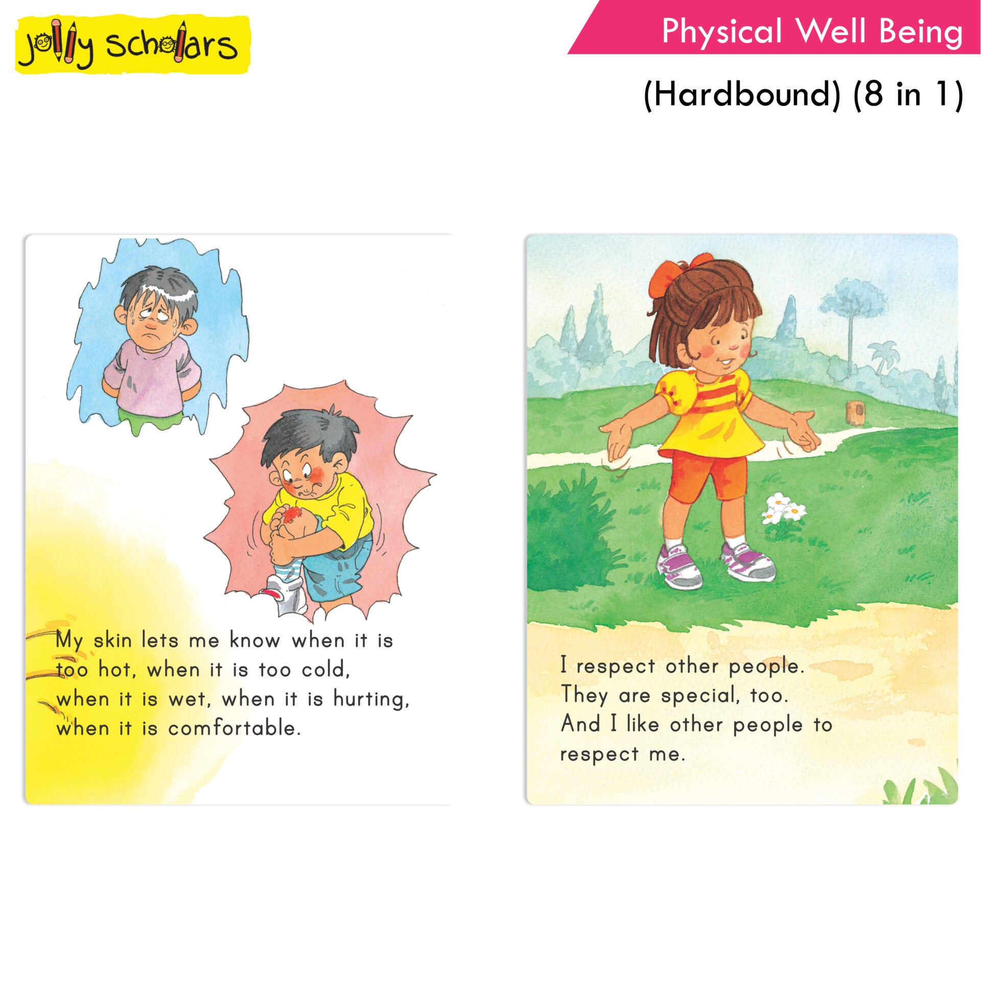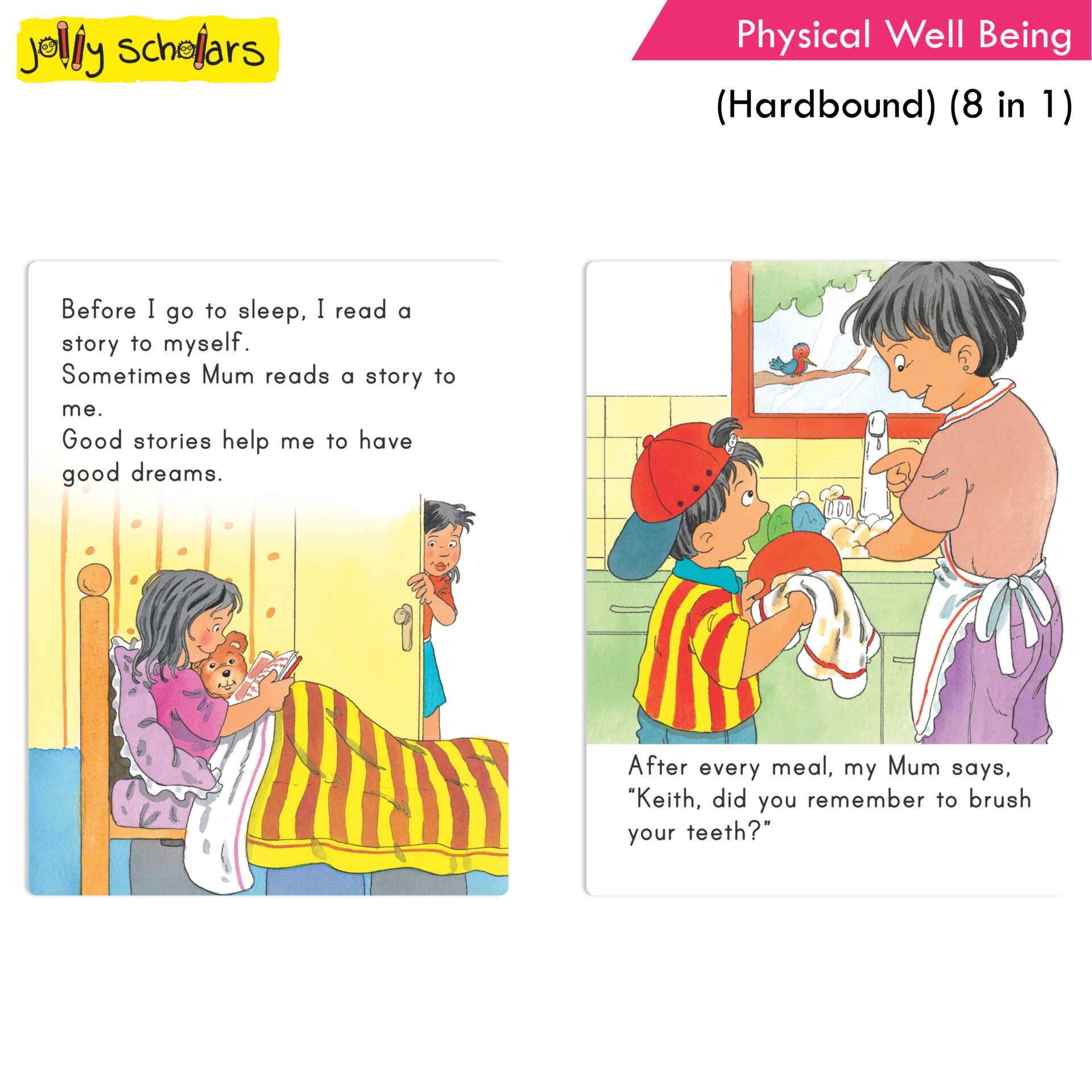• Joy Cowley's well-being series consists of 8 stories in ‘Jolly Scholars Physical Well Being’ book will teach your child the importance of different body parts, physical fitness and encouraging exercise. Also, focus on the active lifestyle of children