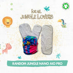 Kindermum Nano Pro Aio Cloth Diaper ( With 2 Organic Inserts And Power Booster)-Random Jungle For Kids - Free Size