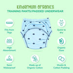 • Kindermum Training pants are padded cotton and muslin underpants which can easily contains pee and poop  .