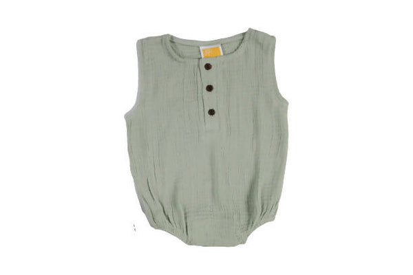 Sunshine Baby Cute Organic Muslin Cotton Sleeveless Rompers For Babies - Greenish Grey