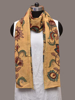 Light Yellow Kalamkari Hand Painted Cotton Stole with Floral Design - Global Threads - Distacart