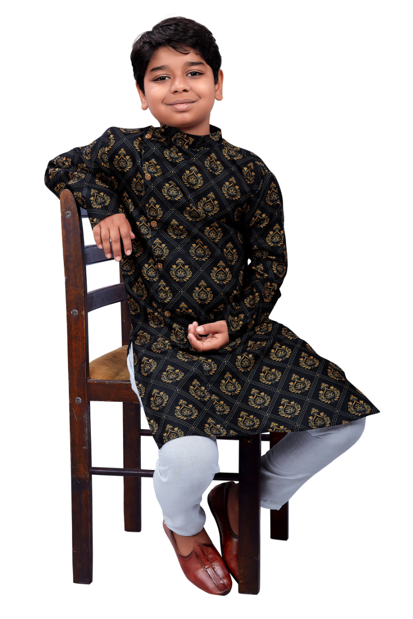 DEIANA'S Casual Designer Kurta Pyjama Set For Boys And kids (Black With Golden)printed kurta pyjama set for boys and kids Product Type: Kurta Pyja...