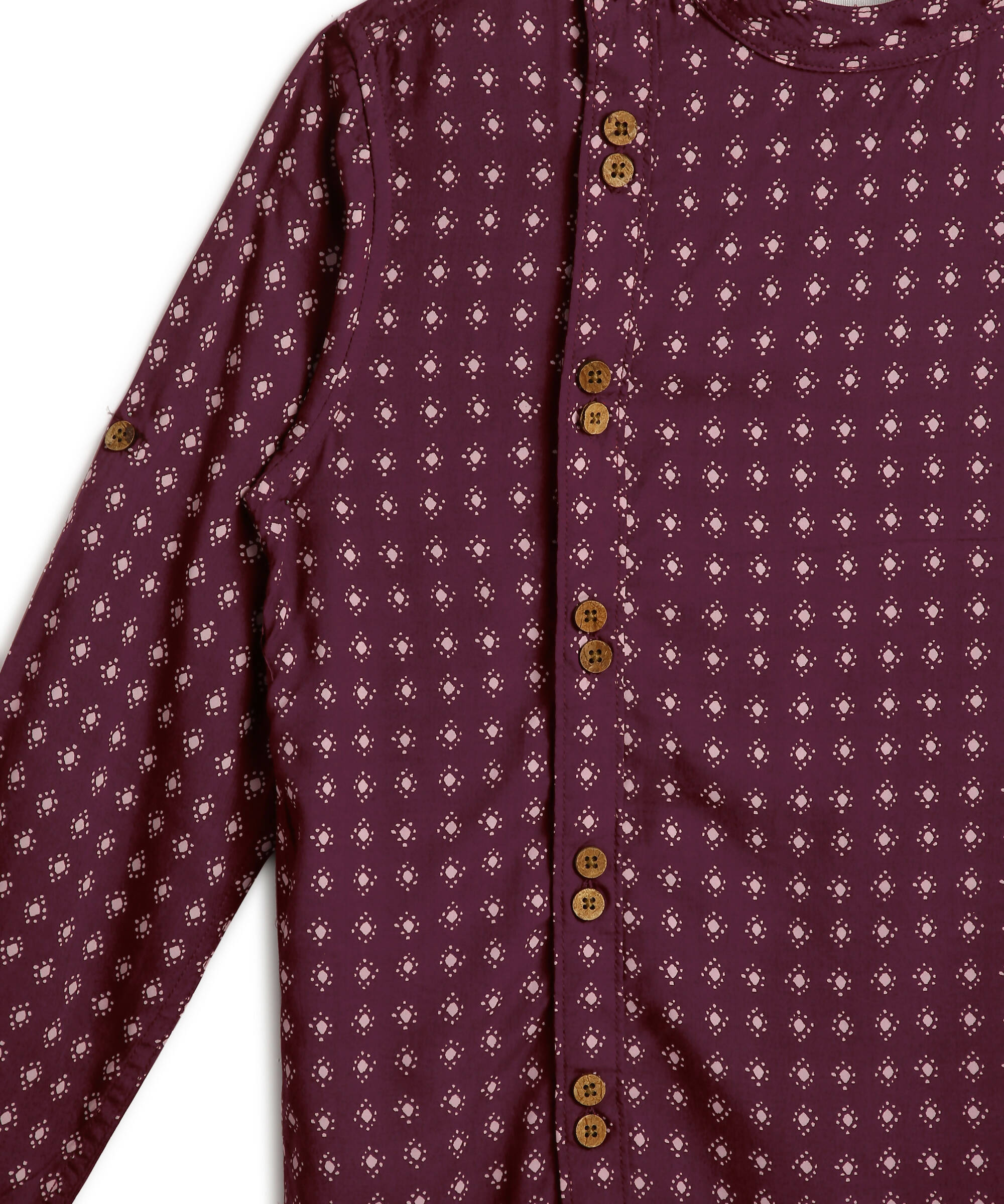 Manet Boys Full Sleeves Dot Printed Ethnic Shirt - Maroon - 2-3 Y