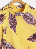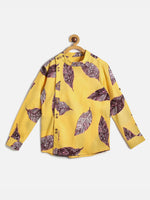 Manet Ethnic Full Sleeves Big Leaf Printed Shirt - Yellow - 2-3 Y