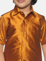 Sethukrishna Boys Mustard Brown & White Solid Shirt and Veshti Set - 2-3Y