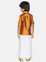 Sethukrishna Boys Mustard Brown & White Solid Shirt and Veshti Set