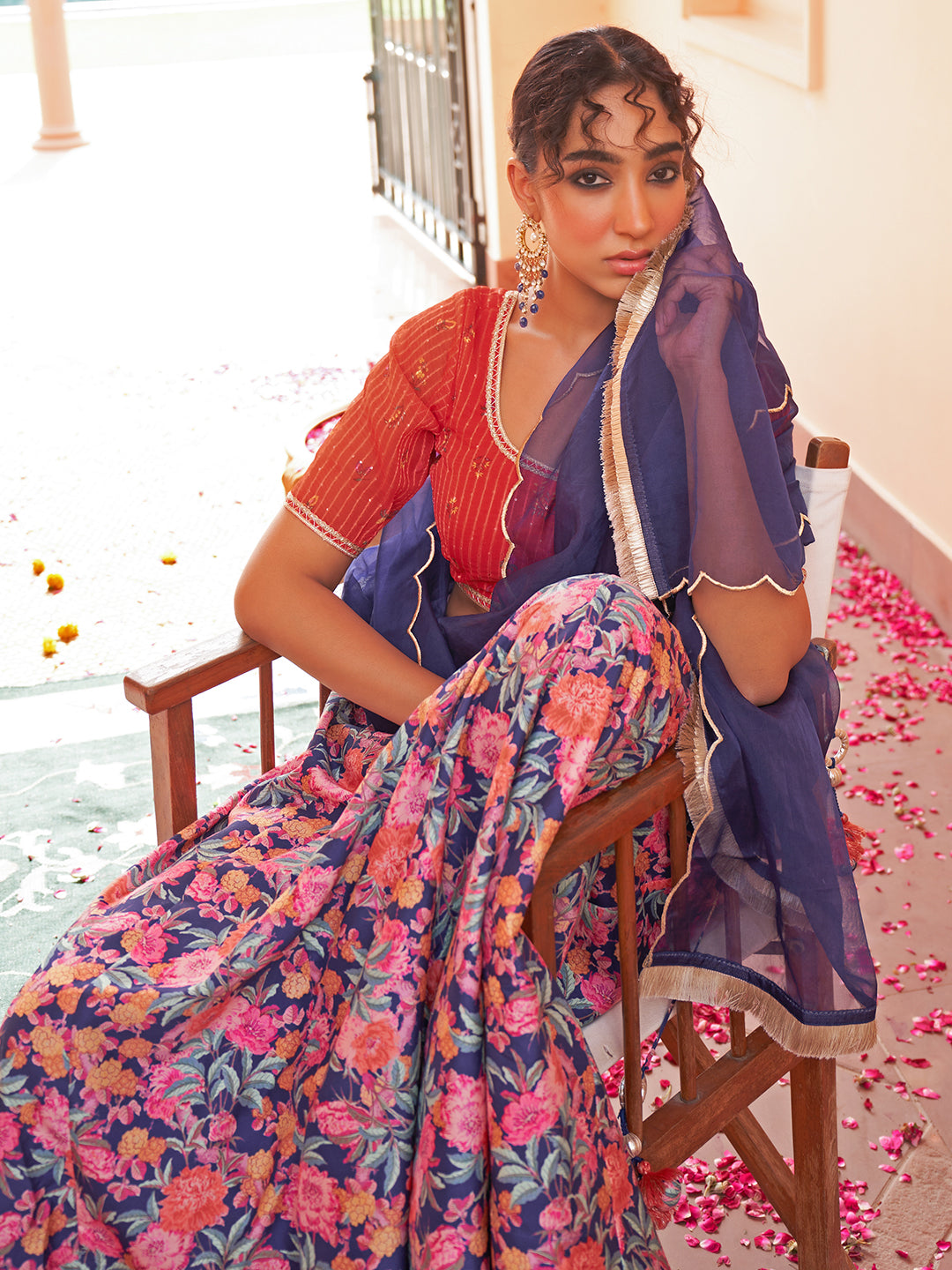 Janasya Red Georgette Digital Floral Printed Festive Lehenga Choli Top color: Red Top Fabric: Georgette Top Pattern: Digital Floral Printed Occ...