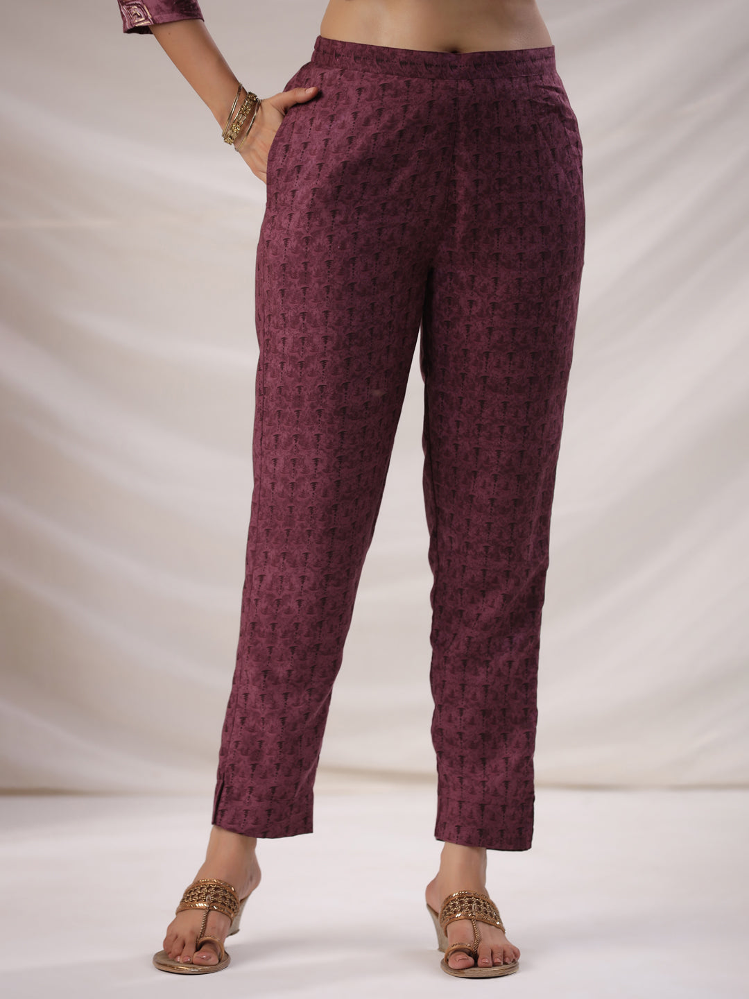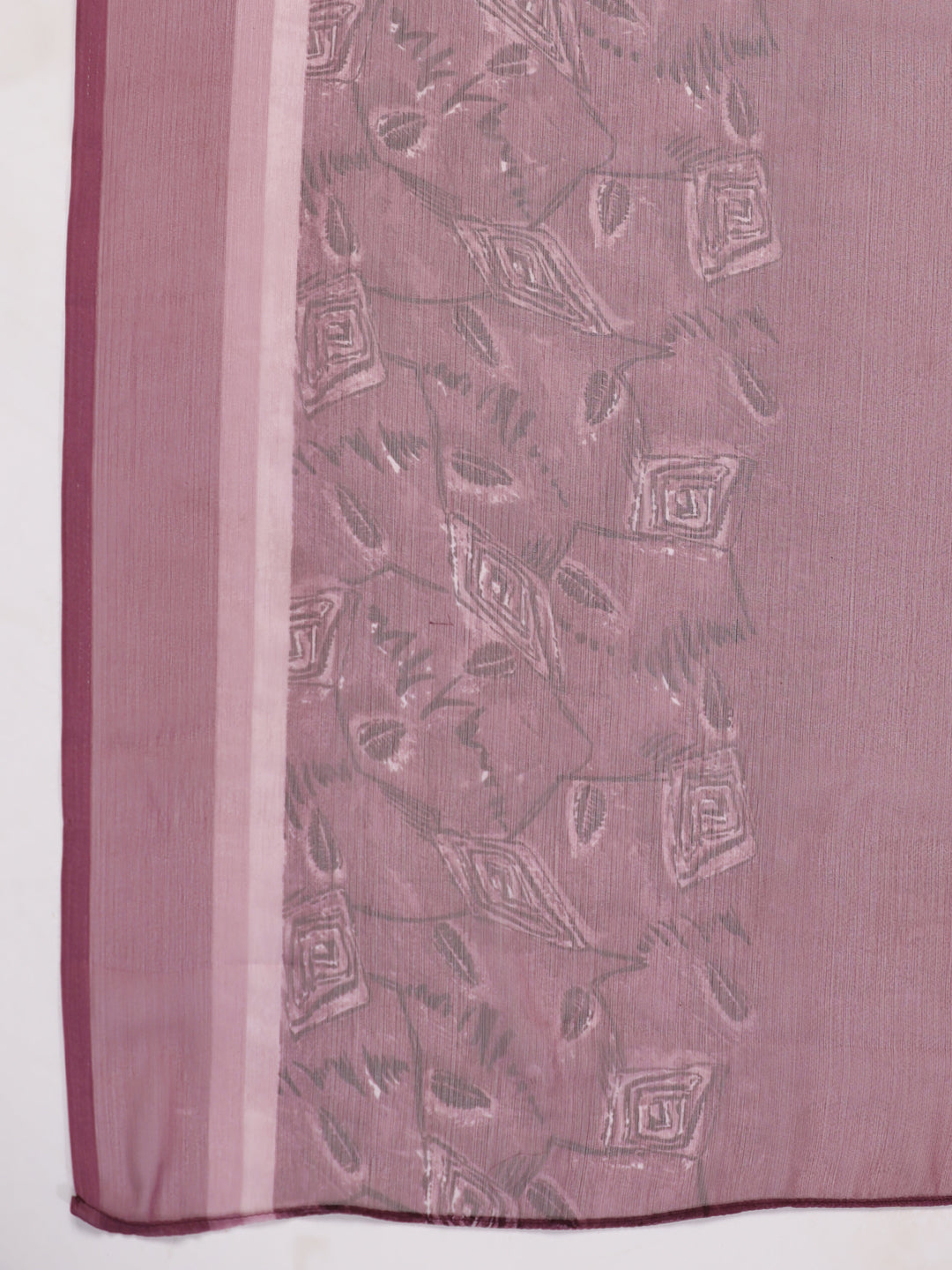 Janasya Regular Biscuit Slub Violet Abstract Tie-Up Neck Kurta,Bottom & Dupatta