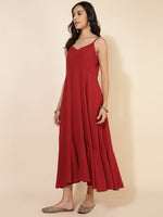 Janasya Women's Red Georgette Foil Printed Festive Flared Dress Set Top color: Red Top Fabric: Georgette Top Pattern: Foil Printed Occasion: Fe...