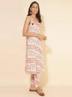 Janasya Women's White Cotton Geometric Printed Casual A-line Co-ords - Distacart