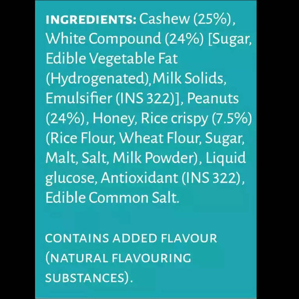 • Cashews, Peanuts, Honey, Rice Crispies,