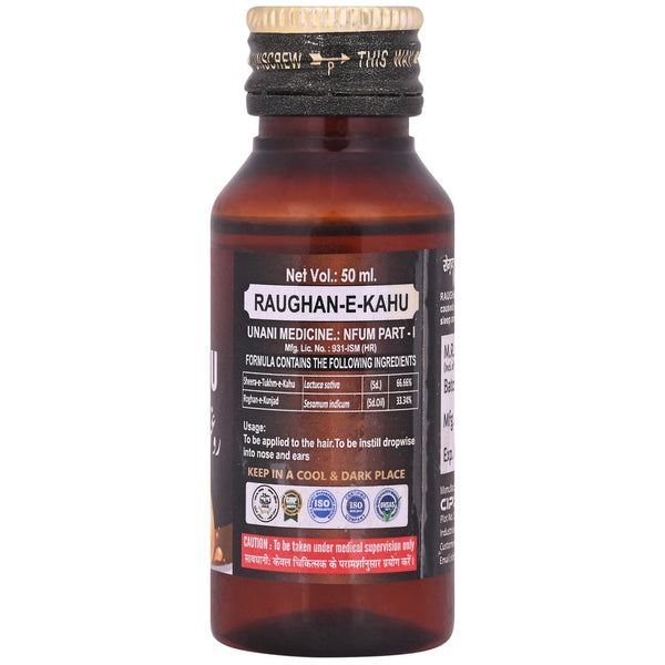 Cipzer Raughan-E-KahuIngredients:Sheera Tukhme kahu, Roghan KunjadHow to Use:Massage gently on the scalp and forehead, Instill a drop or two in the...