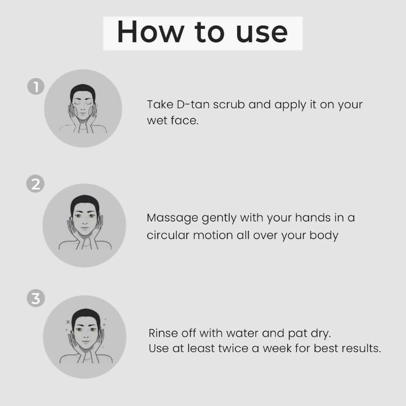 • Achieve luminous and softer skin with this iconic exfoliating scrub. Polish your skin to perfection with this advanced formulation. It has a lightweight texture that gently buffs away dead skin cells and impurities from your skin. Enriched with the richness of Pea extract helps reduce factors within the skin that lead to redness and other signs of sensitivity, Peppermint Oil helps balance uneven skin tone, and a super-soothing blend of Camphor Bark Oil helps calm skin. The De-tan scrub is an advanced solution to clear tan and get healthy skin. Delicate enough for daily use