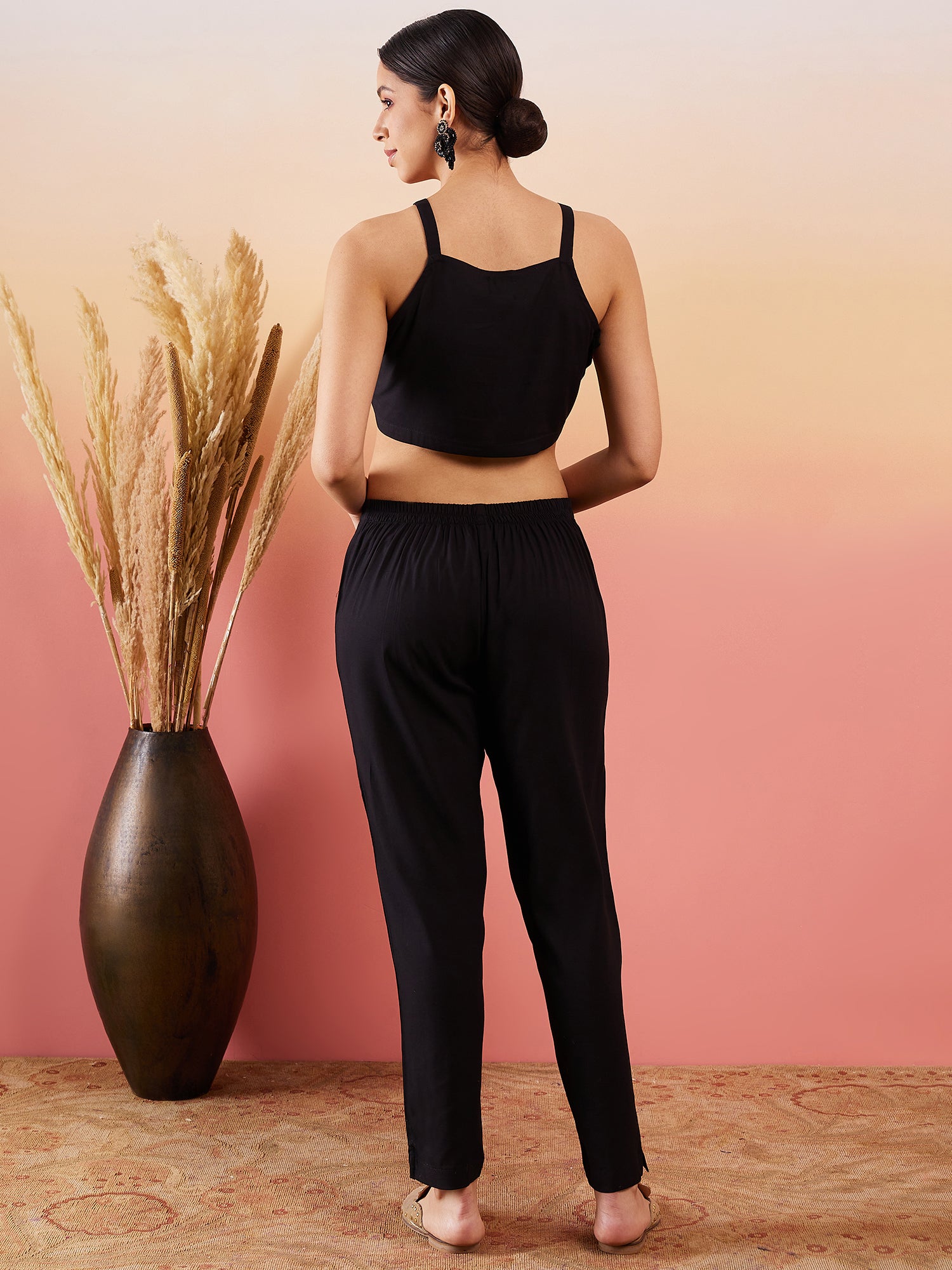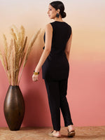 InWeave Black 3 Piece Co Ord Set With BeltThe Top Bottom Set is crafted from best of Indian fabrics. Style it with Oxidised jewelery and a sleek pa...