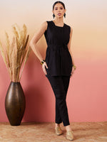 InWeave Black 3 Piece Co Ord Set With Belt - Distacart