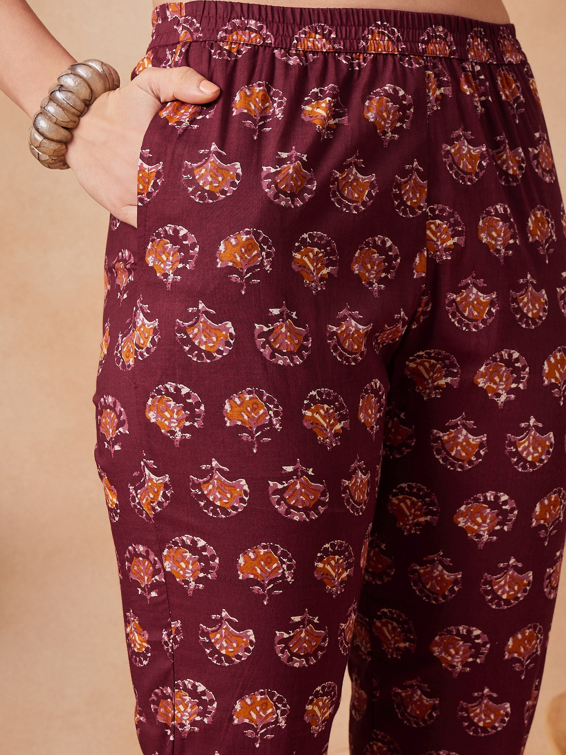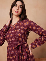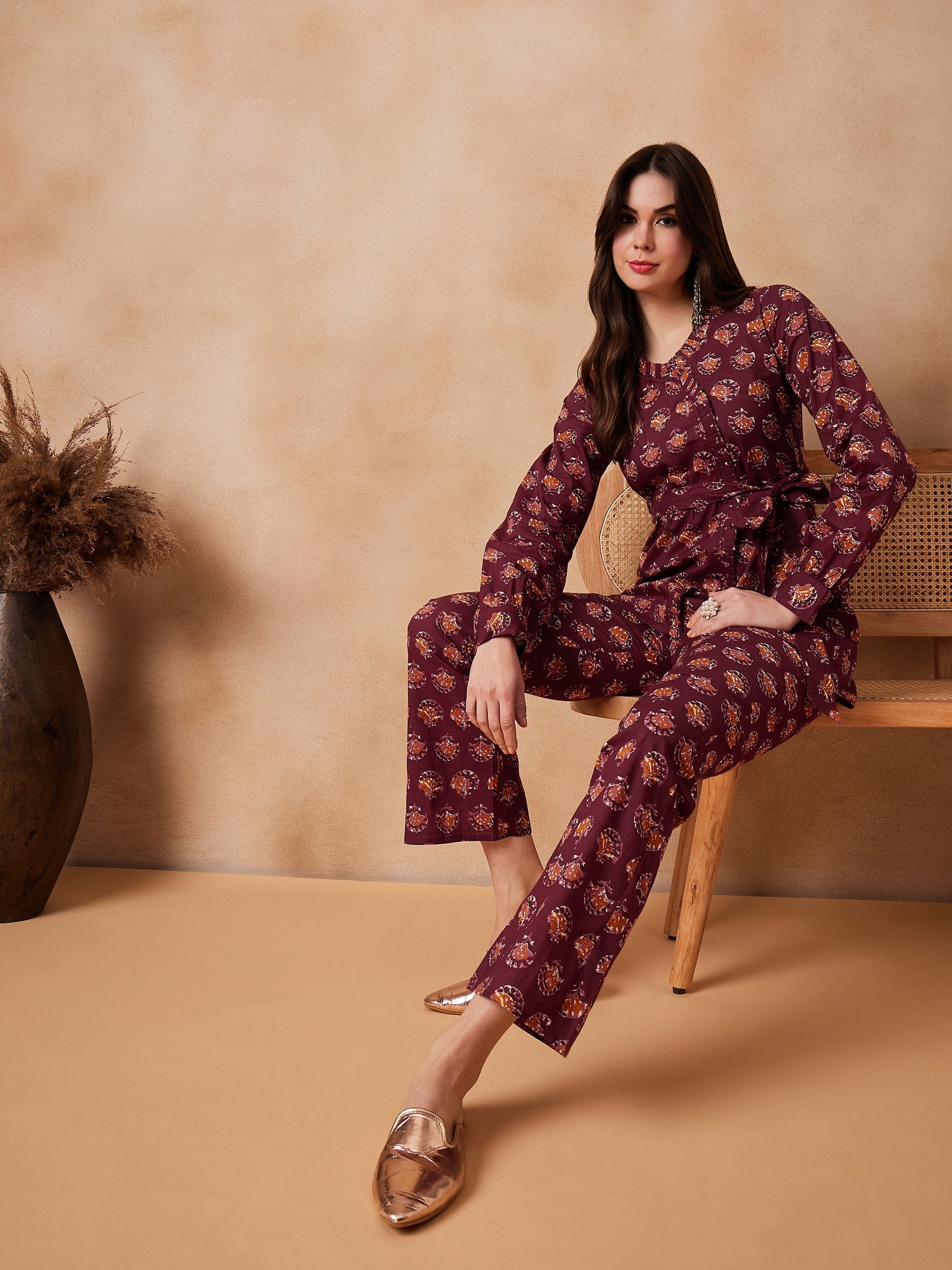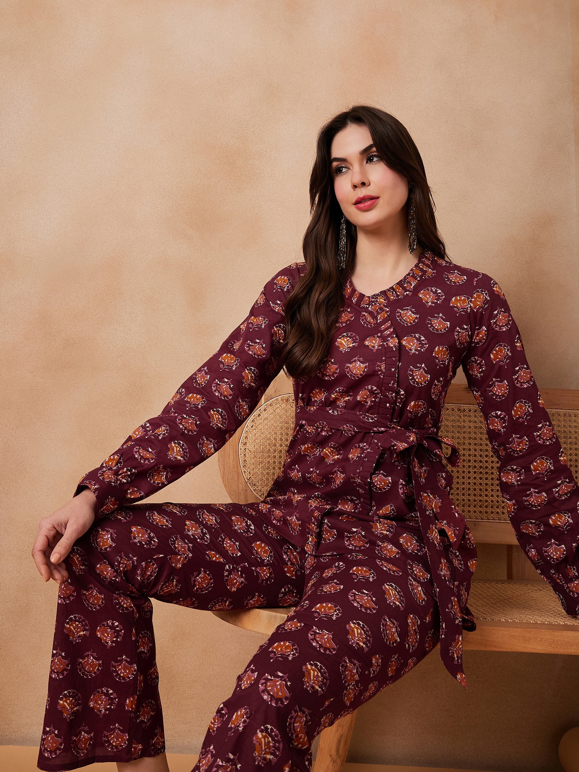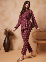 InWeave Burgundy Floral Boota Co Ord Set With Belt