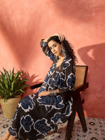 InWeave Mehendi Green Dark Teal Rose V Neck Flared Kurta Set - S