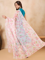 InWeave White Peach Floral Print Organza Dupatta - Distacart
