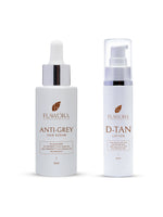 • This set consists of FLAWORA Anti-Grey Hair Serum Advanced Formula with 1.5% silverfree and 2% melanogrey for Reversing Grey Hair, Boosting Melanin Production, and Restoring Natural Hair Color - 50ml, FLAWORA  D-Tan Lotion  for Pigmentation & Tan Removal with Glycolic Acid, Kojic Acid, Lactic Acid, nicanamide  and Shea butter to hydrate the skin | For Dark Spots and uneven skin tone, leading to a brighter and more even complexion