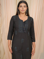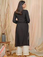 Ode by House of Pataudi Tie U[p Neck Sequined Embroidered Straight Kurta Product Details Colour: black Sequined embroidered V-neck Three quart...