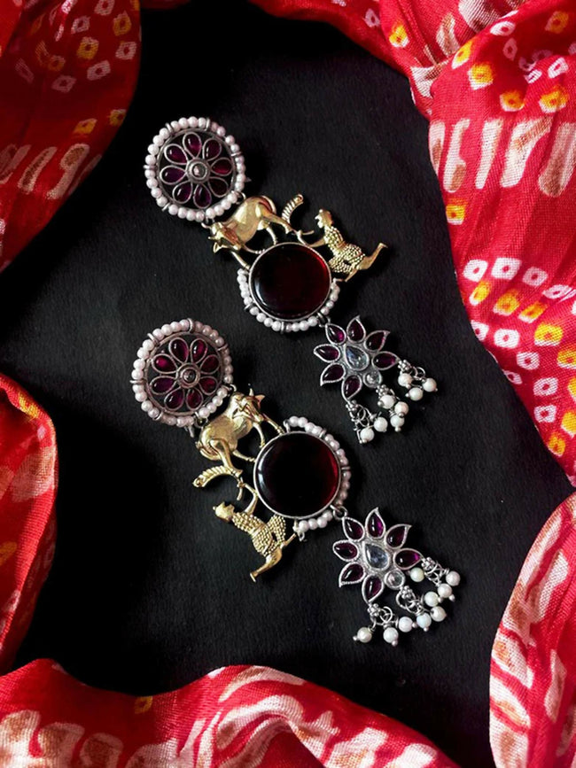 Joban Fashion Women Wine Dual Tone Ethnic Partywear Beaded Earring