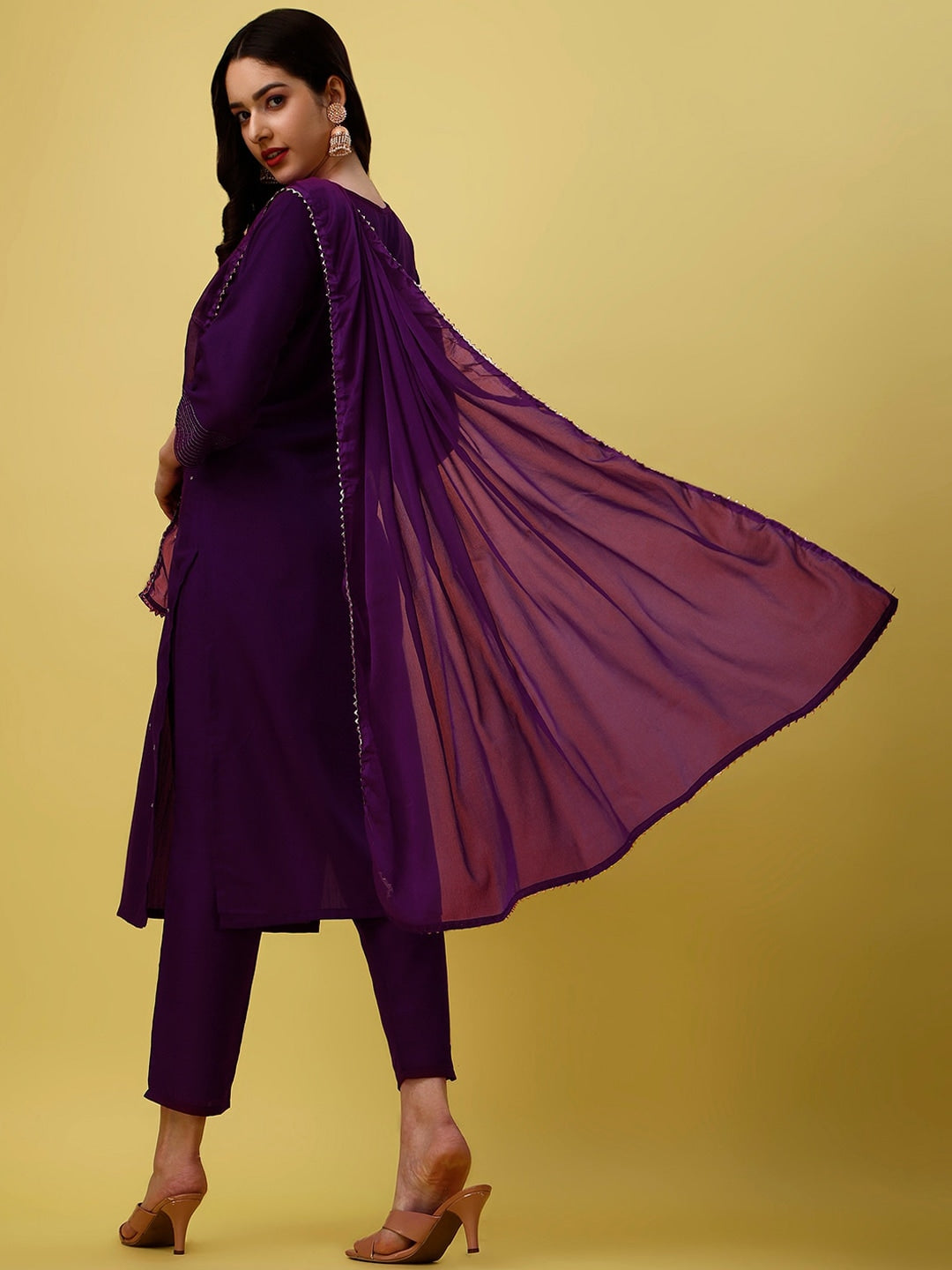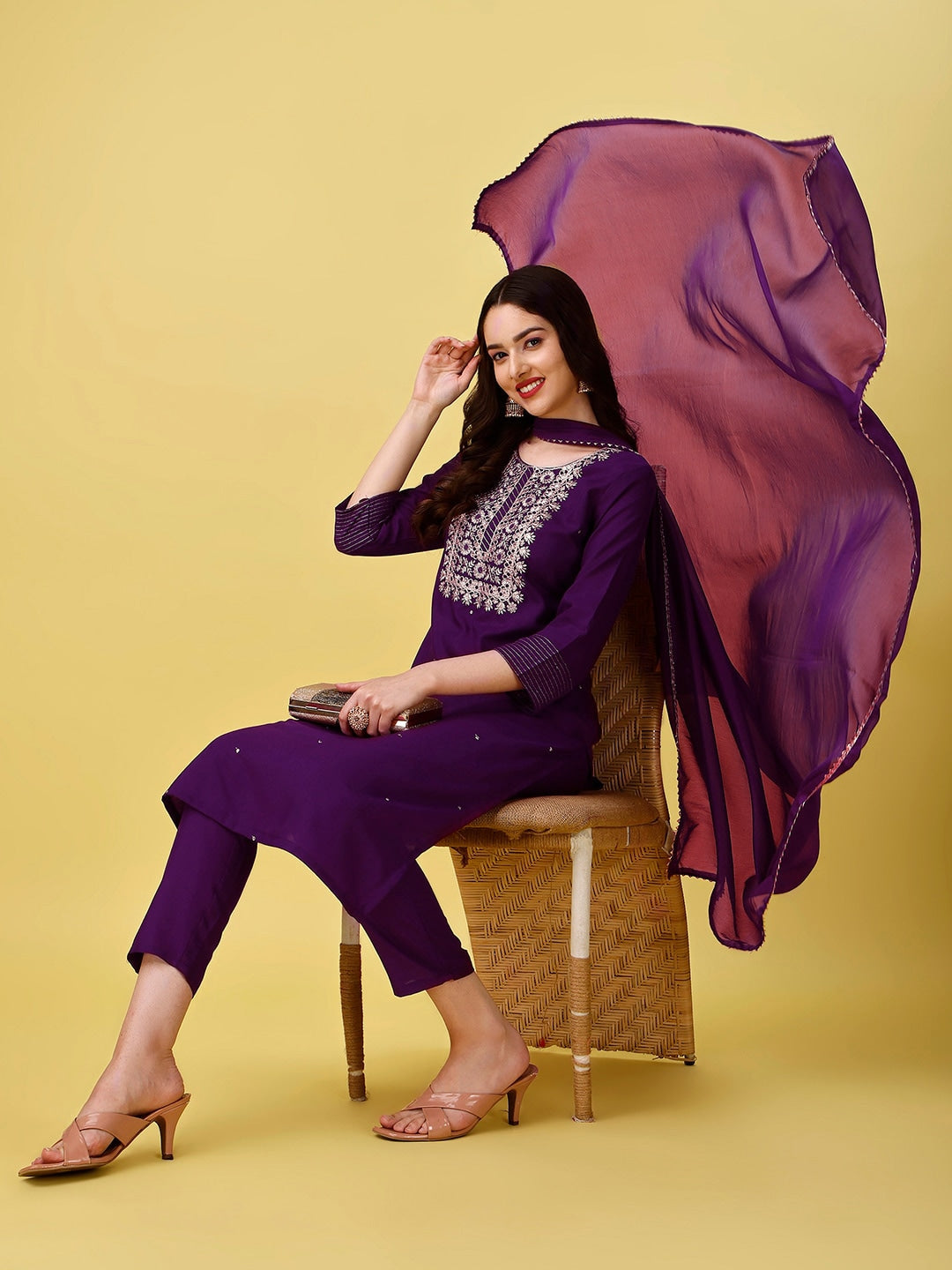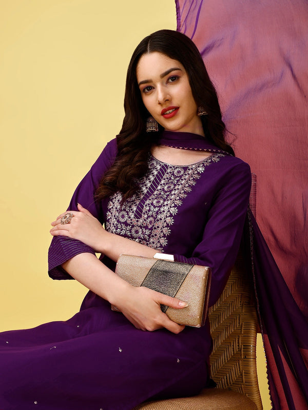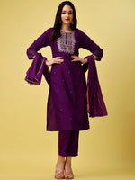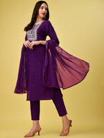 Purple embroidered Kurta with Trousers with dupatta