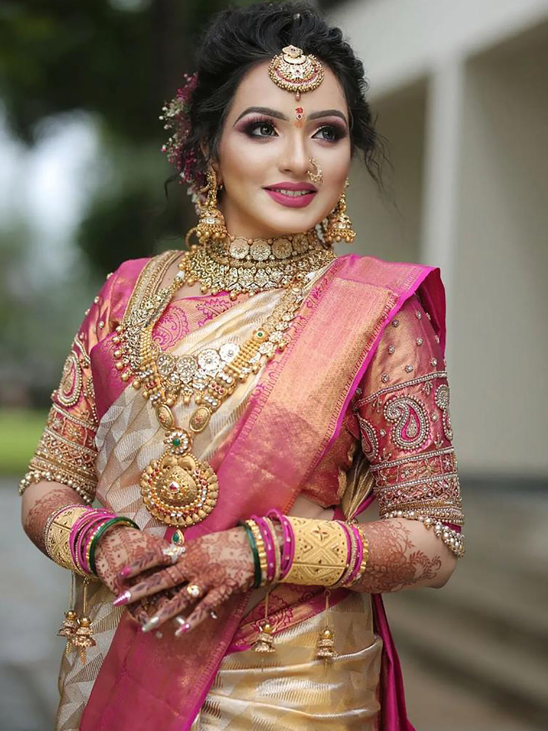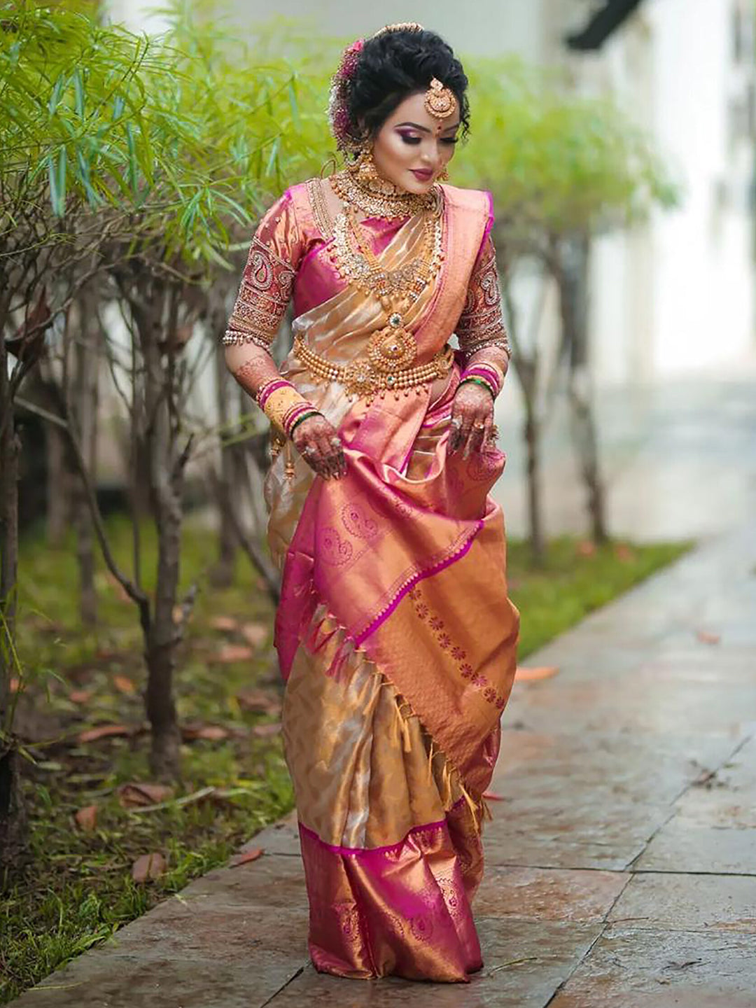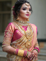 Kalini Ethnic Motifs Woven Design Zari Banarasi Saree Product Details Design Details Beige and pink banarasi saree Ethnic Motifs Woven design ...